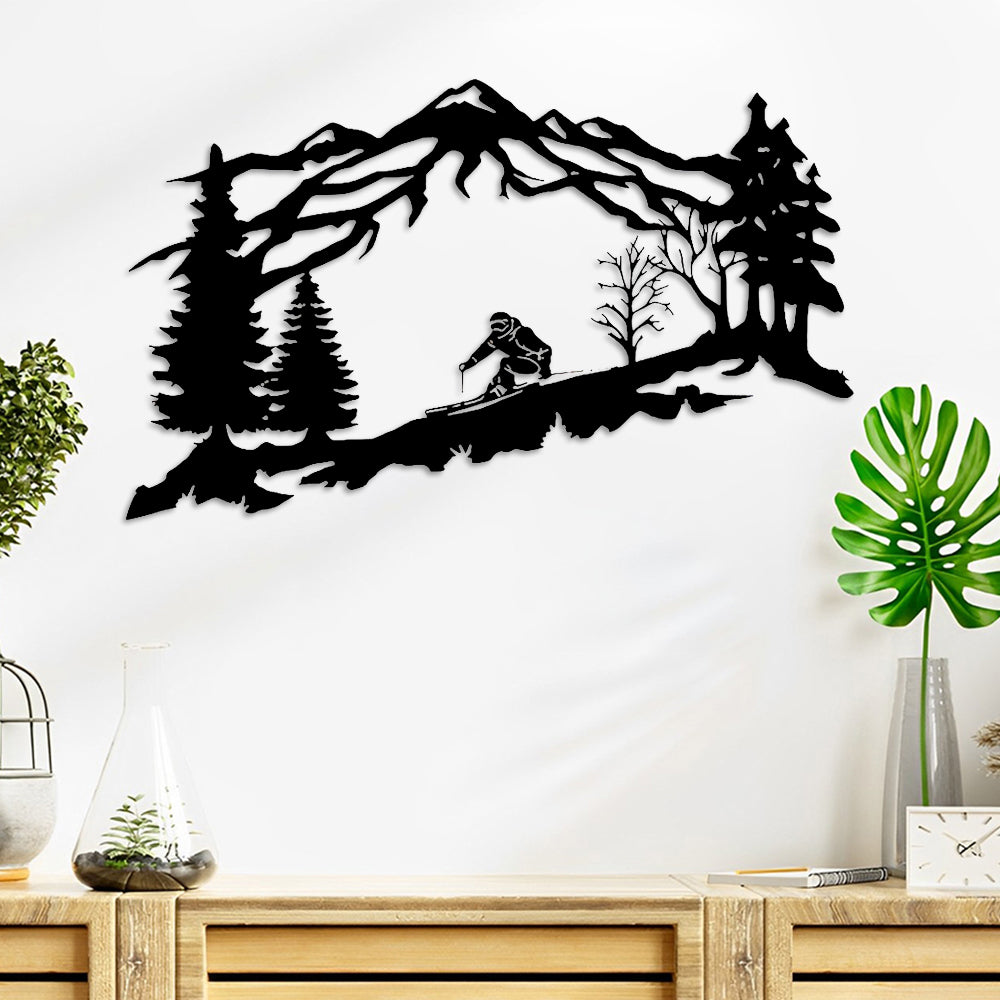 Snow Mountain Lovers Pattern Metal Wall Art Decoration