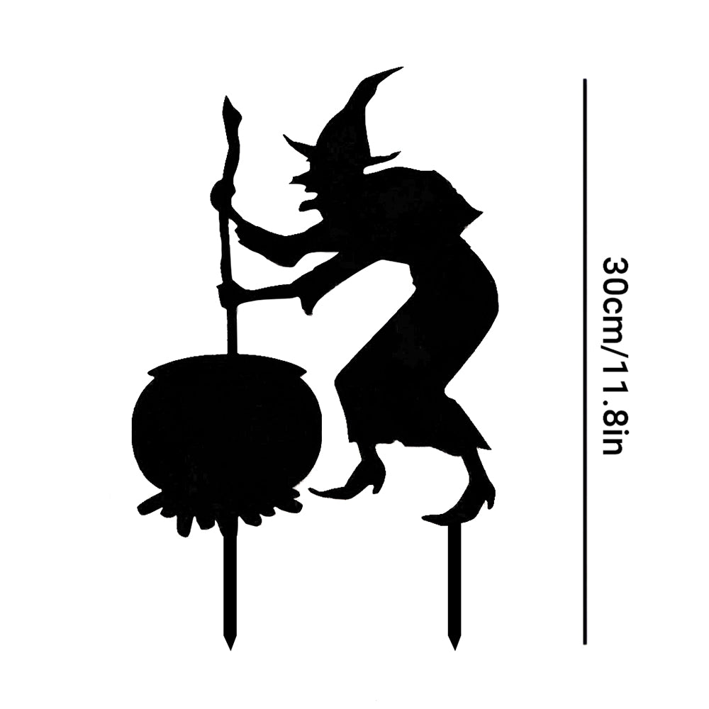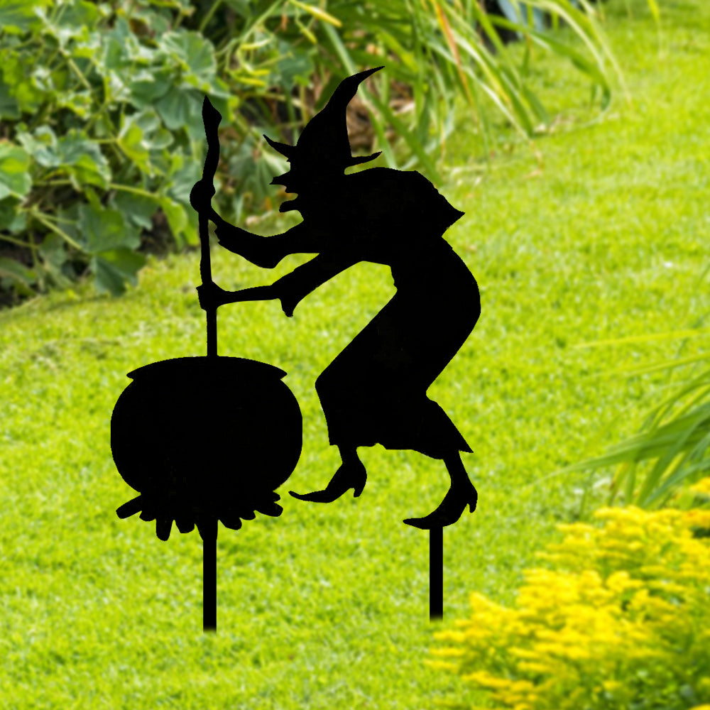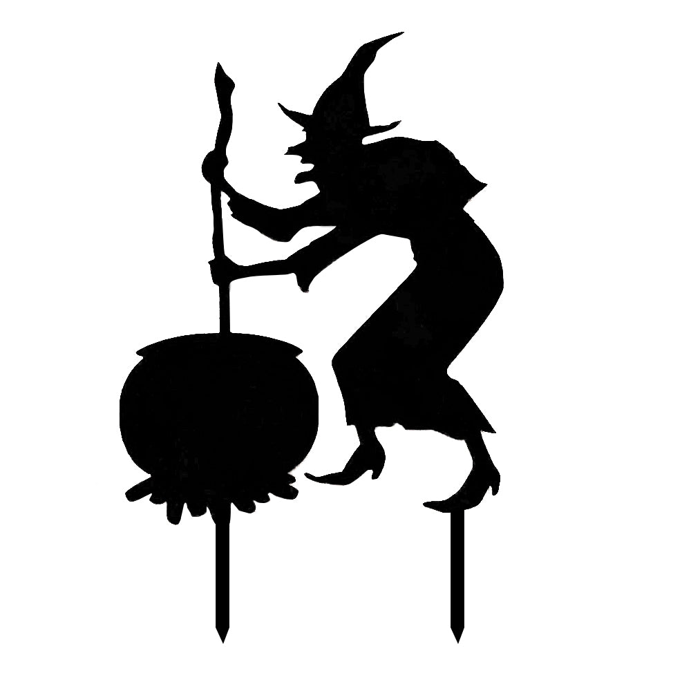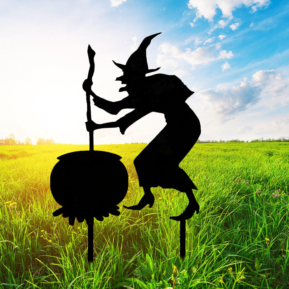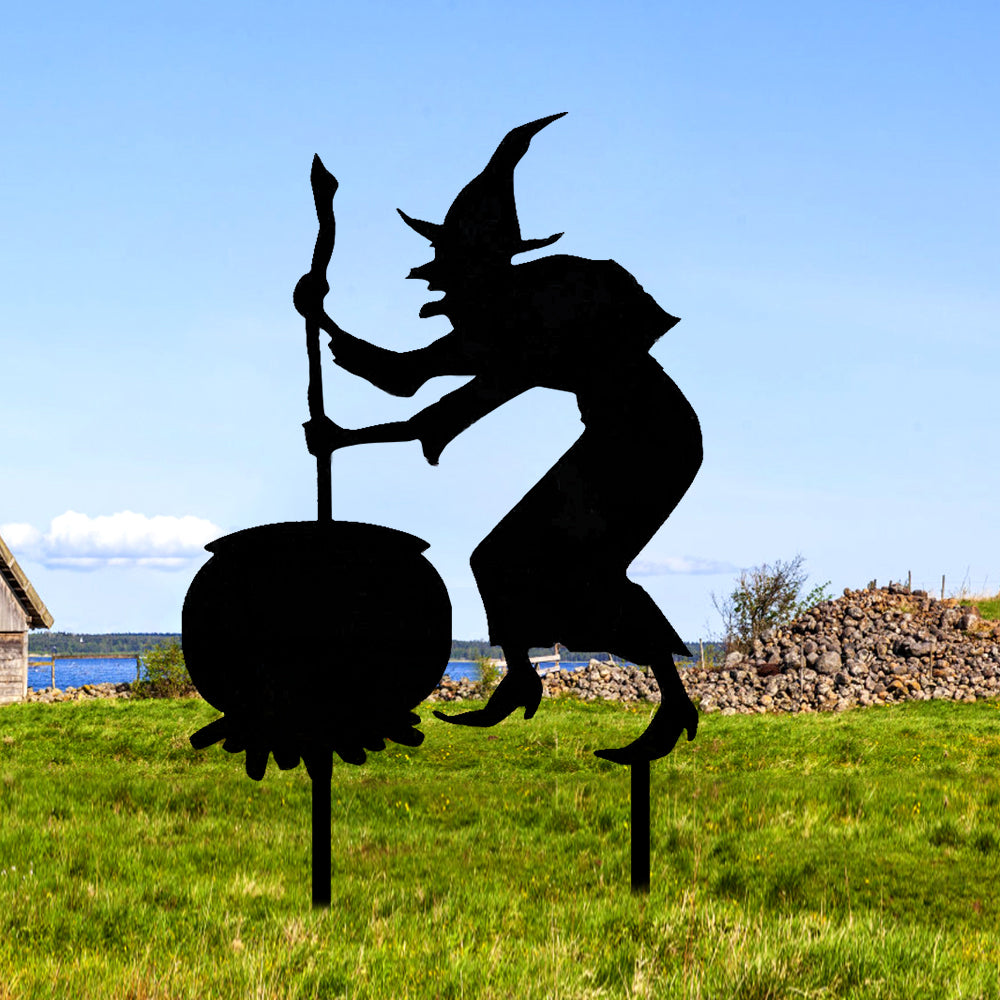 Vintage Witch Stirring Cauldron Halloween Metal Yard Stake